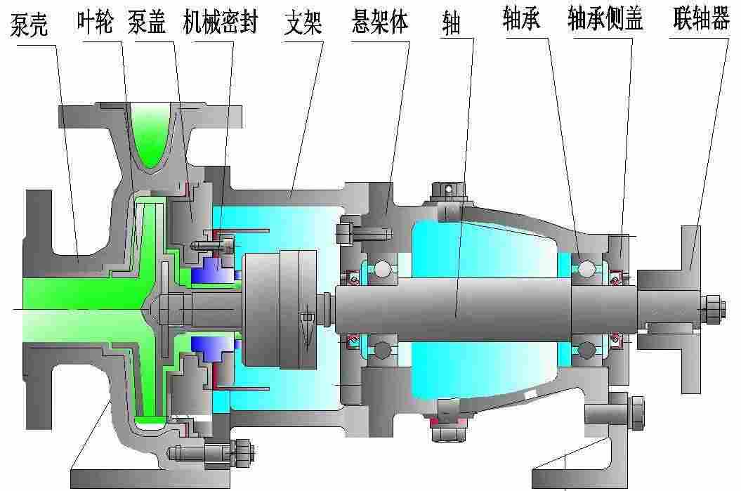 IS单级清水离心泵应用范围 IS型单级清水离心泵是联合设计的节能泵,它是BA型、B型及其他单级清水离心泵的更。优点有:全系列水力性能布局合理,用户选择范围宽,检修方便;效率和吸程达到国际平均水平。IS型单级清水离心泵适用于工业和城市给水、排水,也可用于农业排灌及供输送清水或物理化学性质类似于清水的其他液体之用,温度不高80℃。 IS型单级清水离心泵产品特点 1、IS型单级清水离心泵系根据国际标准ISO2858所规定的性能和尺寸设计的,主要由泵体、泵盖、叶轮、轴、密封环、轴套及悬架轴承不见等组成。 2、IS型单级清水离心泵的泵体和泵盖部分,是从叶轮背面处剖分的,即通常所说的后开门结构形式。其优点是检修方便,检修时不动泵体,吸入管路,排出管路和电动机,只需拆下加长联轴器的中间联接件,即可退出转子部分进行检修。 3、IS型单级清水离心泵的壳体(即泵体和泵盖)构成水泵的工作室。叶轮、轴和滚动轴承等为泵的转子。悬架轴承部件支撑着泵的转子部分,滚动轴承受泵的径向力和轴向力。 4、IS型单级清水离心泵为了平衡泵的轴向力,大多数泵的叶轮前、后均设有密封环,并在叶轮后盖板上设有平衡孔,由于有些泵轴向力不大,叶轮背面未设密封环和平衡孔。 5、IS型单级清水离心泵的轴向密封环是由填料压盖,填料环和填料等组成,以防止进气或大量漏水。泵的叶轮如有平衡,则装有软填料的空腔与叶轮吸入口相通,如叶轮入口处液体处于真空状态,则很容易沿着轴套表面进气,故在填料腔内装有填料环通过泵盖上的小孔,将清水离心泵室内压力水引至填料环进行密封。泵的叶轮如没有平衡孔,由于叶轮背面液体压力大于大气压,因而不存在漏气问题,故可不装填料环。 6、单级清水离心泵为避免轴磨损,在轴通过填料腔的部位装有轴套保护。轴套与轴之间准有O型密封圈,以防止沿着配合表面进气或漏水。 7、单级清水离心泵的传动方式是通过加长弹性联轴器与电动机联接的,泵的旋转方向,从驱动端看,为顺时针方向旋转。 |